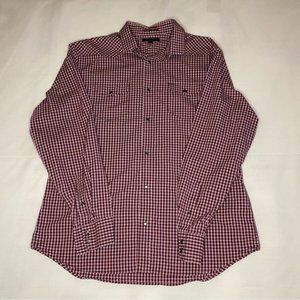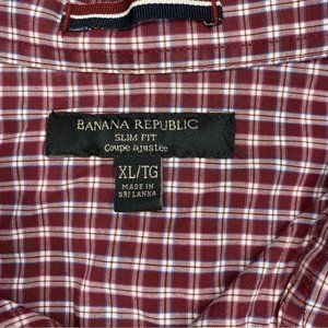 Banana Republic Dark Red/Burgandy Slim Fit Long Sleeve Check Plaid Shirt