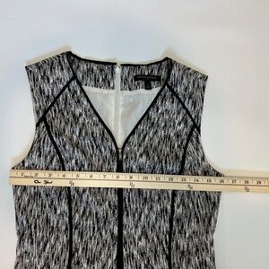 Elevate your office attire with this stunning Banana Republic shift dress in a size 6. The sophisticated black and white design features a sleeveless silhouette and a fitted style, perfect for a professional yet stylish look. Made for women who wear size 6. Please see photos for exact measurements. Made of polyester and cotton with a touch of spandex for stretch and comfort. This knee-length dress is a versatile piece that can be dressed up or down for any occasion. Add a quality and stylish piece to your wardrobe with this sleek and chic garment. In excellent condition. No flaws.