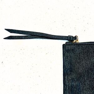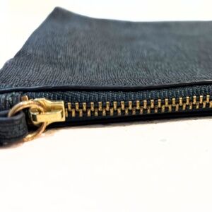 This Banana Republic zippered pouch is crafted from textured goat leather. It features a rich dark emerald hue that adds a touch of sophistication to any outfit. The gold-toned zipper closure ensures your essentials are secure while adding a subtle shine. Perfect for carrying makeup, small essentials, or even as a stylish clutch, this multi-use pouch is both functional and fashionable.