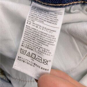 Great used condition. Minor signs of wear shown in pics. Minor distressing above left pocket. Tag says dark Wash, these are not a dark Wash. see close ups. Size 28, measurements in pics. Please look at all pics and zoom in for a closer view.