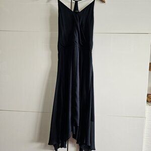 Banana Republic Factory Solid Belted Handkerchief Dress True Navy Blue