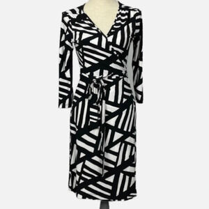 Banana Republic Factory Wrap Midi dress Size XS Black & White Geometric print