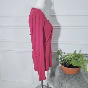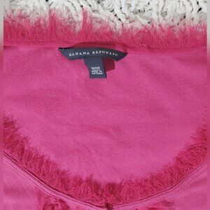 Banana Republic Feathered Trim Boat Neck Magenta Long Sleeved Henley Top