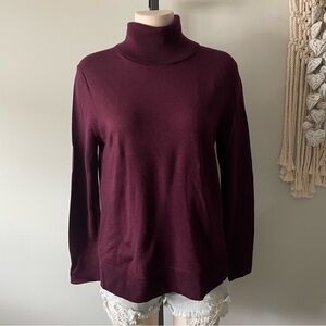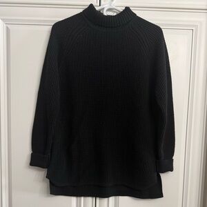 Turtleneck. Long sleeves. Ribbed Trim. Hits at the hip.