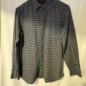 Banana Republic Flannel Shirt Men’s M Gray Navy Gingham Standard Fit