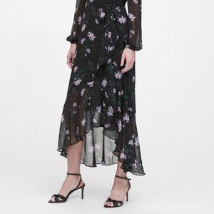 Standout with this flowing maxi dress with ruffled accents and a wrap-effect front, making it even easier to throw on and go.