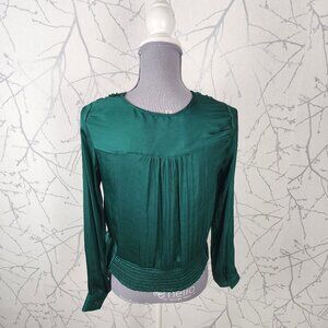 Banana Republic Forest Green Satin Surplice Faux Wrap Blouse