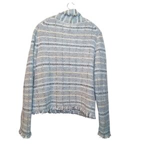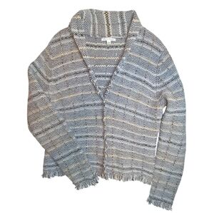 Vintage Banana Republic Gray Wool Angora Blend Tweed Bouclé Fringed Cardigan Made In Hong Kong Size L