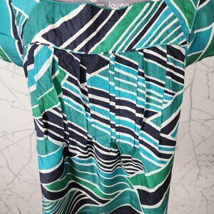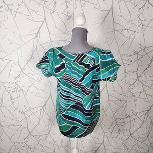Banana Republic Green Abstract Print 100% Silk Square Neck Top