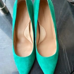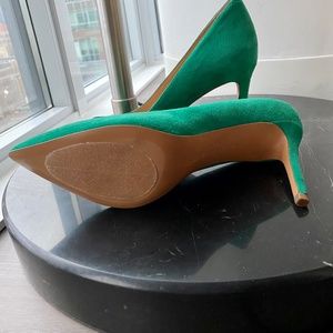 Brand New! Green suede heels, super comfortable, added grip on the bottom, round toe cleavage, pointed toe