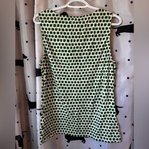 Stylish sleeveless top with a green and white geometric pattern. V-neck design. Perfect for casual wear.