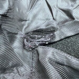 Pre owned. There is a tear on the lining near the bottom of the jacket that cannot be seen when worn
