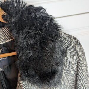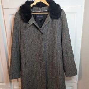 Banana Republic Herringbone Wool Blend Coat | Real Fur Collar | Women's Size XL