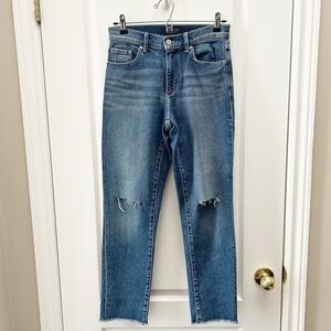 Banana Republic High Rise Straight Leg Jeans Distressed Raw Hem