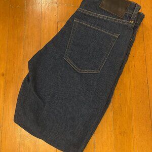 New and never worn. Cut for a stovepipe-straight fit, these high-waisted jeans are crafted from organic cotton denim, woven with just a touch of stretch for comfort. Straight Fit: High rise (11"). Slim from hip to thigh, with a stovepipe-straight leg. Full length. Organic: Made with certified, organically grown cotton that's easier on the earth. Zip fly with button closure. Belt loops. Five-pocket styling.