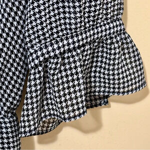 Banana Republic houndstooth mini dress with collar bow and ruffled sleeves. Fabric is lightweight and flowy, size small. In very good condition, laundered and ready to wear.