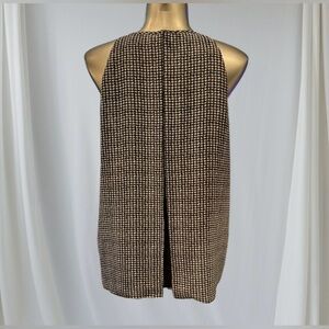 Stylish loose flowing tank top, flared hemline with a classic houndstooth pattern and black interior lining with zipper back. Ideal for versatile styling. Pit to pit 22”, length from shoulder 26”. Polyester fabric.