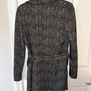 Banana Republic Jacket Belted Black White Chevron Dressy Lined Trench Womens 4