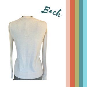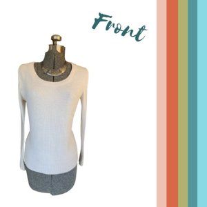 This is a beautiful cream sweater. The front has a knit texture. Worn only a few times.