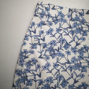 Banana Republic Ladies Size 12 Ivory w/Blue Flower Pattern Bermuda Length Shorts