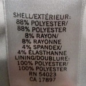-Shell: 88% Polyester/8% Rayon/4% Spandex