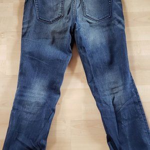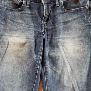 Dark wash with slight distressing and mildly stretchy, these Banana Republic womens jeans are a size 26/2.