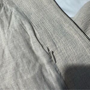 Fresh and versatile, this Banana Republic linen bomber jacket in a soft new off-white color is perfect for layering in any season. Featuring a zip-front closure, inner zip pocket, and lightweight breathable fabric, it’s both stylish and practical. The shell is crafted from 70% cotton and 30% linen, while the lining blends 55% linen and 45% cotton for added comfort.