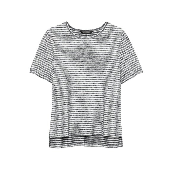 Supersoft, marled jersey knit. Heavier than a tshirt, but lighter than a sweater- perfect for spring and fall! Half sleeves. Crewneck. Straight, split hem. Centre back seam. Boxy silhouette with an easy fit. Slight high-low hem. Hits at the hip.