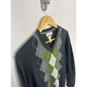 Banana Republic Luxury Blend Angora Rabbit Hair Cashmere Green Argyle Sweater M