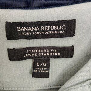 Banana Republic Luxury Touch Ultra Doux Men's Polo Shirt Size L Standard Fit 100% Cotton Gray Green Casual Comfy Summer Resortwear