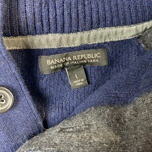 Banana Republic Mens Sweater Large Slim Fit Blue Gray 1/4 Button Merino Wool