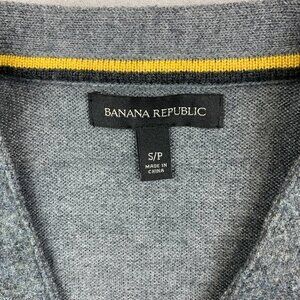 Banana Republic Mens Sweater Vest Small Gray Sleeveless Cardigan Merino Wool