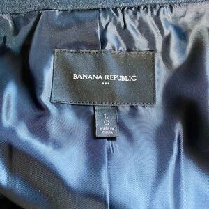 Beautiful condition, this Banana Republic Topcoat is 70% wool and is great for semi-formal events. Collar can be turned up and has a nice grey colour. Size large.