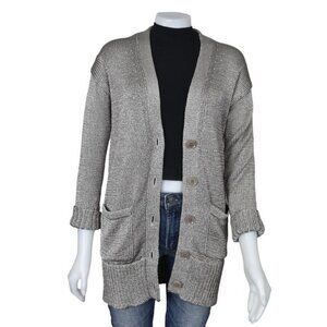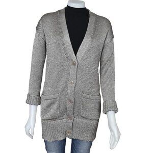 Banana Republic Metallic Chunky Knit Long Cardigan Sweater Champagne Size Small