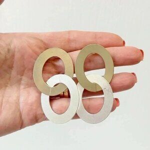These stunning earrings feature a unique blend of gold and silver metallic tones, adding a touch of elegance to any outfit.