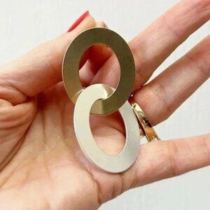 Banana Republic Mixed Metal Double Hoop Earrings Gold Silver Metallic NWT