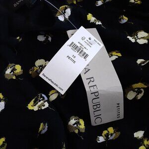 Banana Republic NWT Women's Size 10P Black Yellow Floral Puff-Sleeve Mini Dress