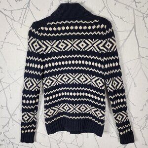 Banana Republic Navy Aztec Cotton Wool Blend Shawl Collar Cardigan