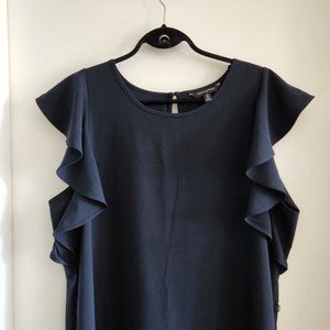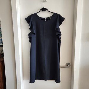 Banana Republic navy blue sleeveless shift dress with attached waist tie and flared sleeves. Barely worn.