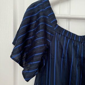 Banana Republic Navy Blue Striped off the shoulder dress, size XSmall.
