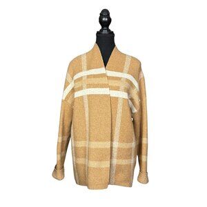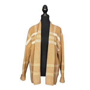 Banana Republic Open-Front Cardigan in Camel and Cream Plaid, Soft & Cozy
