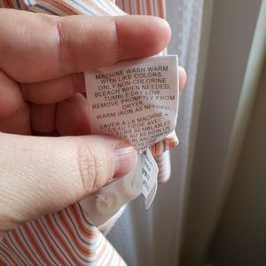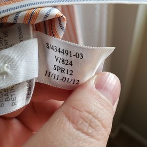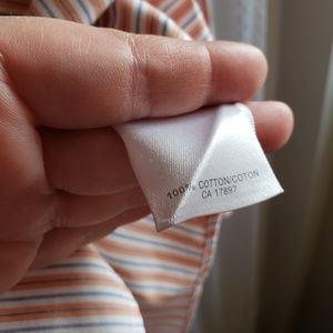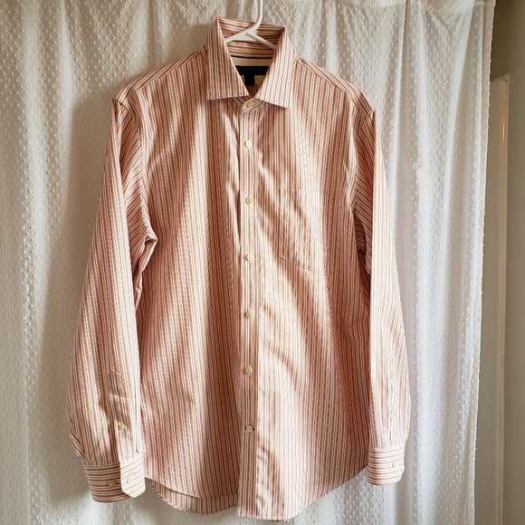 Banana Republic men's button-up shirt with orange, navy, and white stripes.
