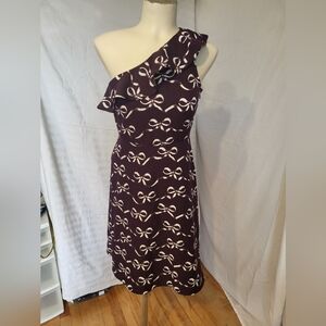 Stylish dress with a unique purple and white pattern. one shoulder chic dress