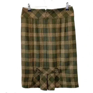 Banana Republic Pencil Skirt Wool Tartan Plaid Kick Pleat Brown Tan Size 0