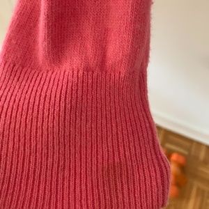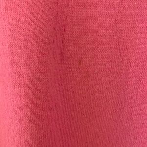 A pink round neck sweater. Perfect fit, great for cold weather. **Notice** There are some stains on cuffs and at front.