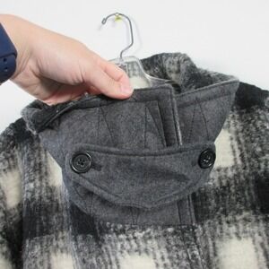 Keywords: Banana Republic, plaid, wool, oversized, double-breasted, winter, black and white coat, women's coat, jacket, outerwear, wool blend, plaid jacket, made of Italian fabric, large, L
