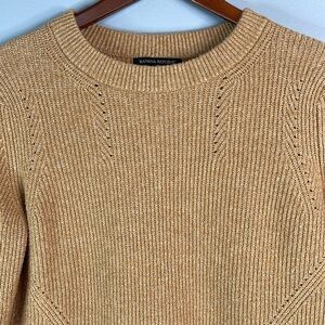 Banana Republic Pointelle Classic Camel Crewneck Sweater Ribbed Academia Prep S