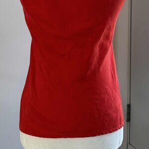 Banana Republic Poppy Red Silk Sleeveless Top with Ruffled Cowl Neck – US XS