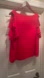 This striking red blouse from Banana Republic features an elegant asymmetrical design with cascading ruffles that add a touch of sophistication. The sleeveless style and lightweight fabric make it a perfect choice for warm weather, offering both comfort and style. PTP 22”. Perfect condition