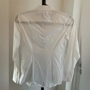 Point collar. Clean front. Long sleeves with buttoned cuffs.